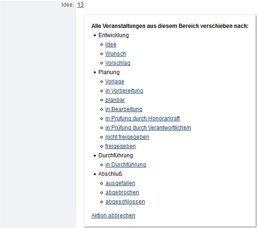 Am Ende der Phase „Planung“ sollten alle Veranstaltungen den Status „freigegeben“ haben.