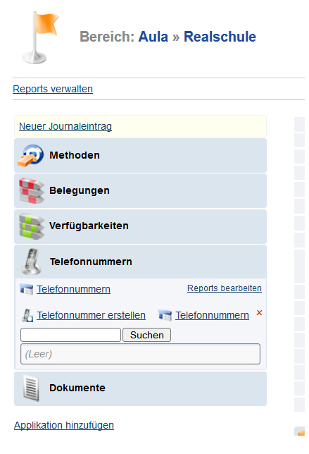 Telefonnummer (Orte)Bei einem Raum kann wie bei einem Kontakt die Applikation „Telefonnummer“ genutzt werden.