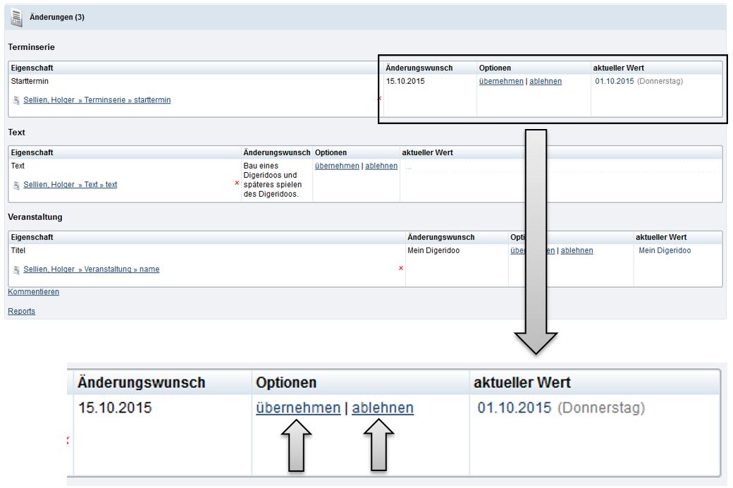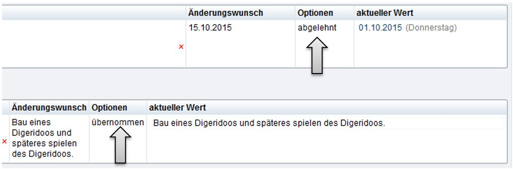 Beispiele einer abgelehnten und einer übernommenen Änderung: