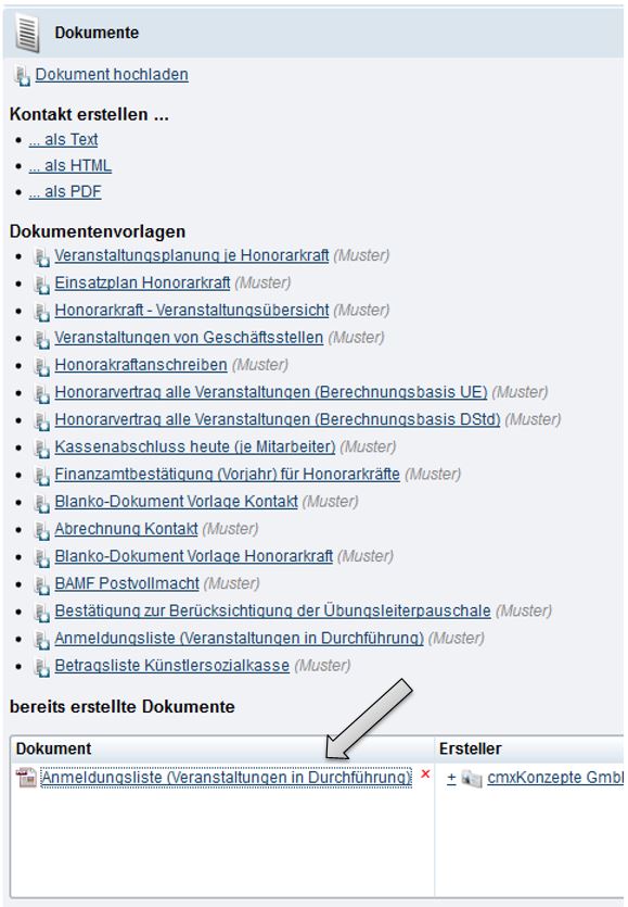 Bereits erstellte Dokumente können individuell Bearbeitet werden. Hierfür in der Spalte „Dokument“ in der Applikation „Dokumente“ das entsprechende Dokument anklicken.