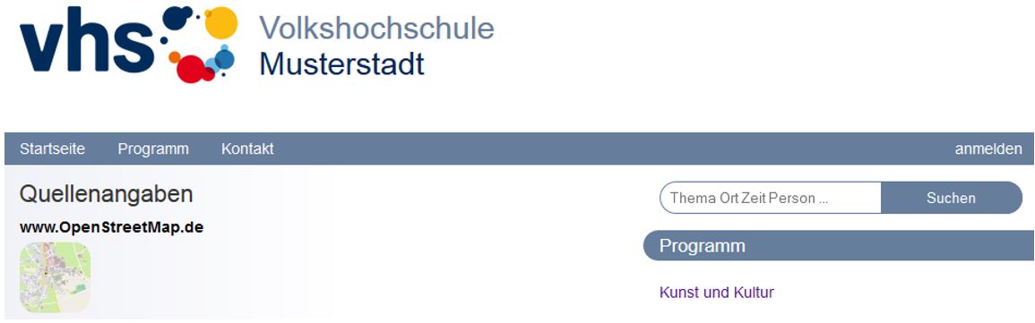 In der Applikation „Quellenangaben“ können die Quellenangaben sämtlicher Bilder Ihres Internetauftritts auf einer eigenen Webseite angezeigt werden. Voraussetzung hierfür ist die ausgefüllte Eigenschaft „Quellenangaben“ im jeweiligen Bild.