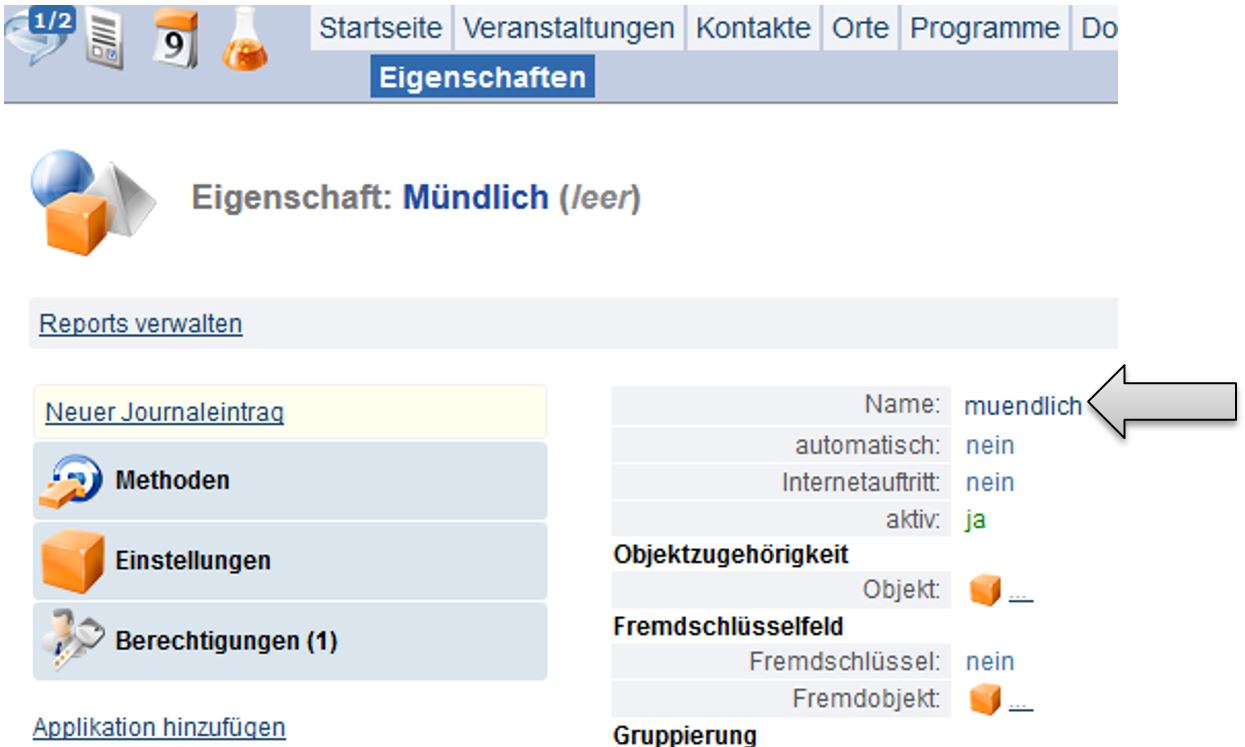 Der Namen der Eigenschaft steht in dem Feld „Name“.