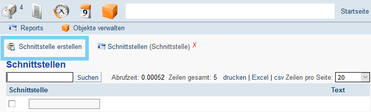 Navigieren Sie in cmxOrganize zu dem Report "Schnittstellen" (Über die Startseite oder die allgemeine Suche) und wählen Sie dann "Schnittstelle erstellen" aus. Für die neue Schnittstelle wählen Sie als Vorlage "Newsletter maileon (Export)" aus.