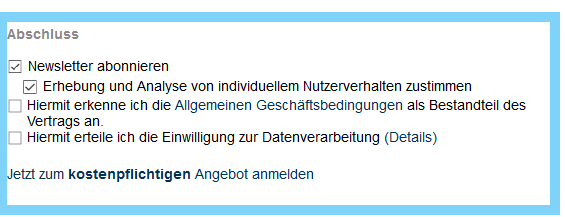 Neben der Anmeldung zum Newsletter kann ein Nutzer auch der