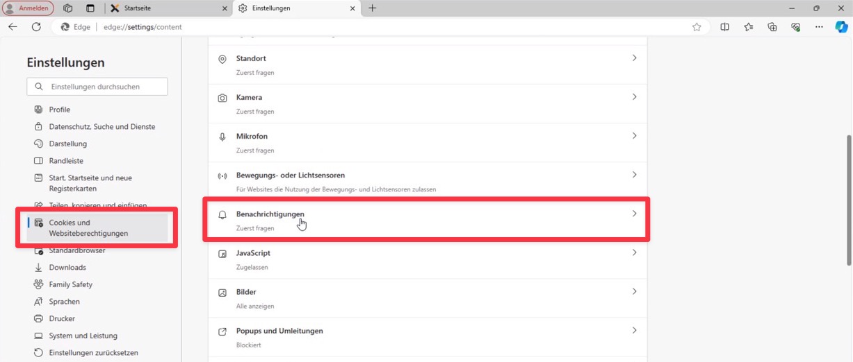 Benachrichtigungen im Microsoft Edge Browser einrichten