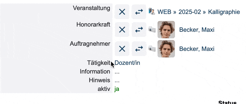 - Durch ein Klick auf dieses Symbol, kann das verknüpfte Kontextobjekt in der Eigenschaft direkt ausgetauscht werden.