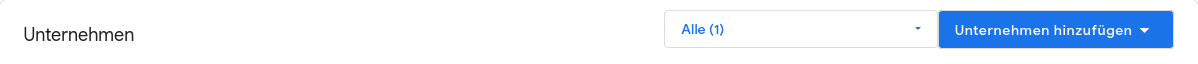 Klicken Sie im Dashboard auf den blauen Button „Unternehmen hinzufügen“ und wählen Sie „Einzelnes Unternehmen hinzufügen“.