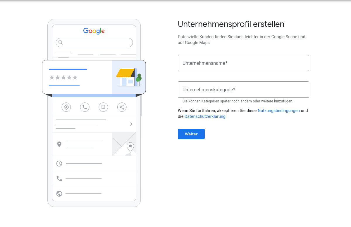 So starten Sie den Google-Prozess zur Erstellung oder Übernahme eines Google Business Profils.