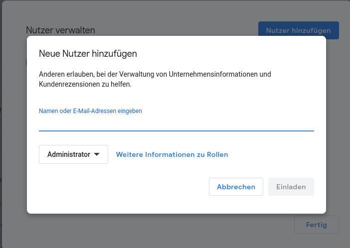 • Die Standorte sollen von mehreren Google-Konten aus verwaltet werden (Kollegen, Markenmanager, Agentur)