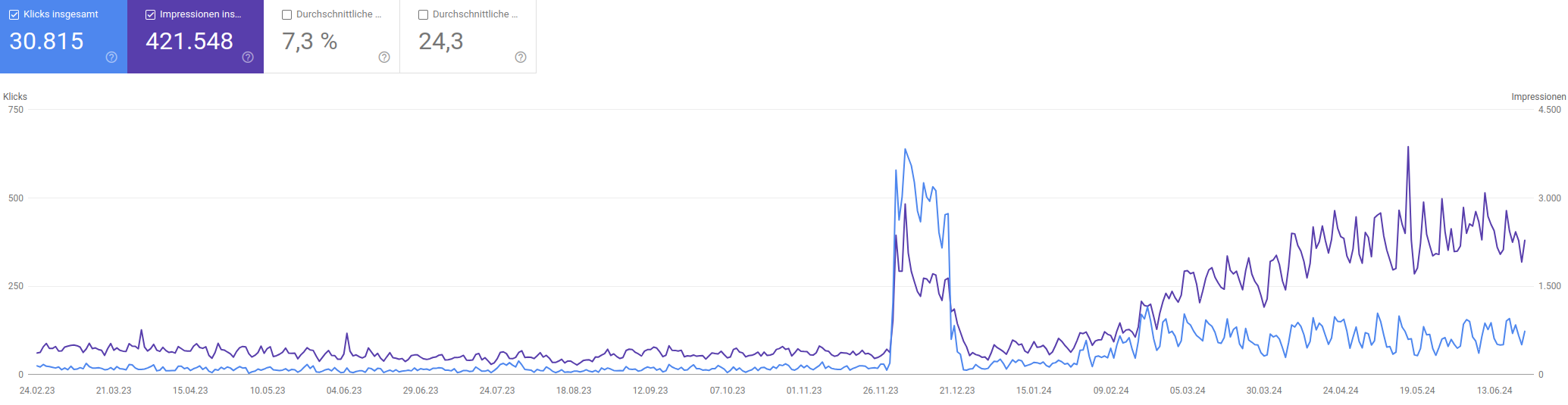 Wenn die Arbeiten im SEO-Basispaket durchgeführt sind, steigt die Reputation und die indexierten Seiten bei den Suchmaschinen signifikant. Impressionen und Klicks werden vervielfacht.
